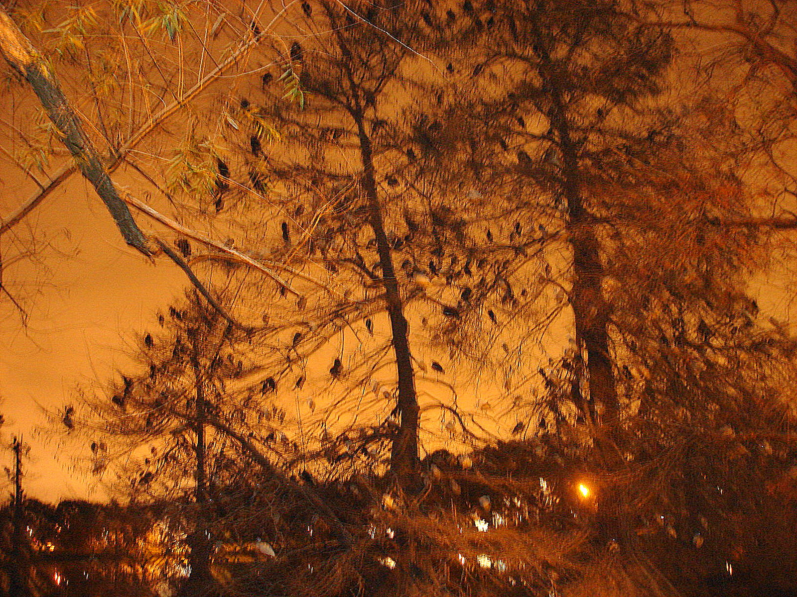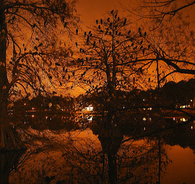 | South Louisiana - LSU Lakes - Birds as Ornaments flocking the trees |